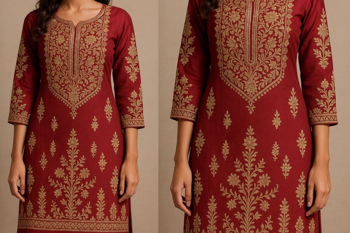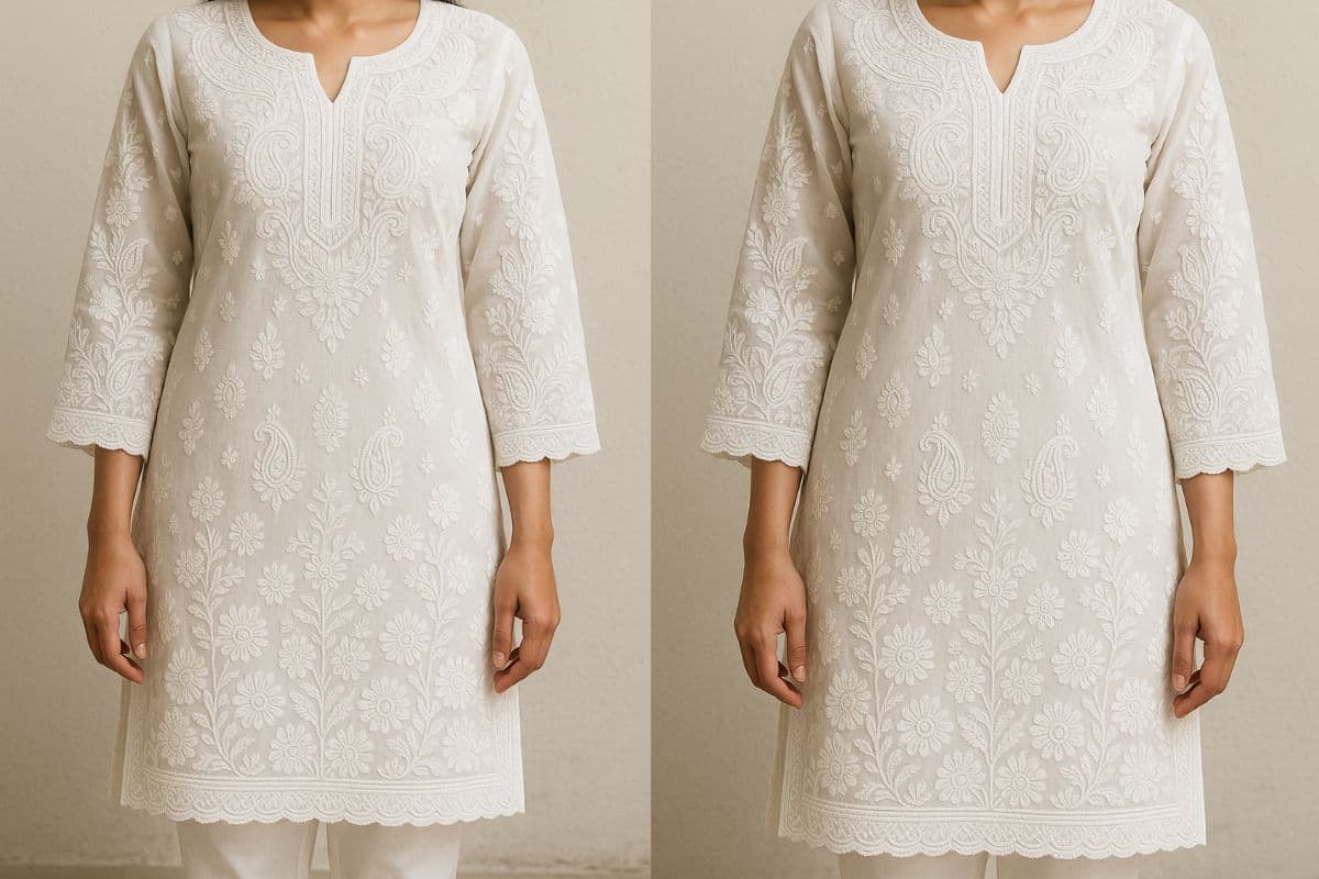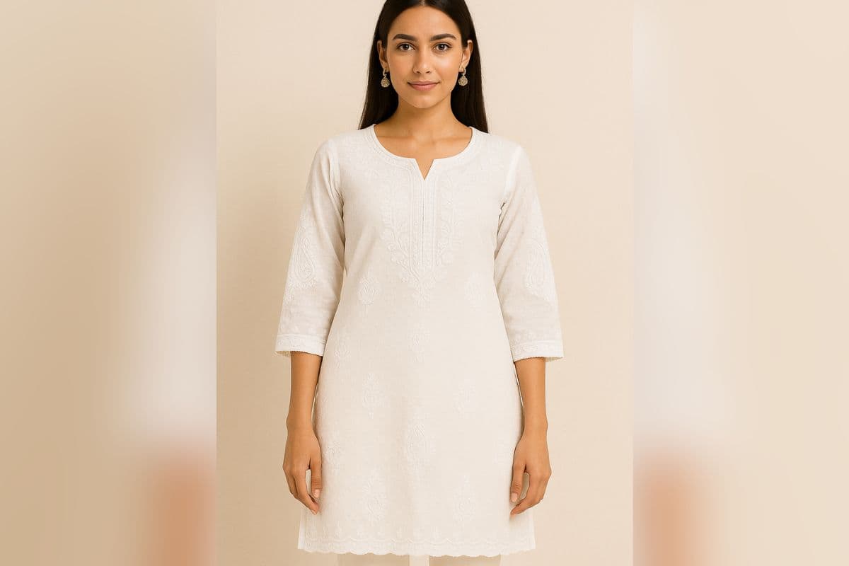 लखनऊ की खासियत मानी जाने वाली चिकनकारी कढ़ाई, सफेद कपड़े पर बेहद शानदार लगती है. ये पहनने के बाद बहुत एलीगेंट और क्लासिक लुक देती है.