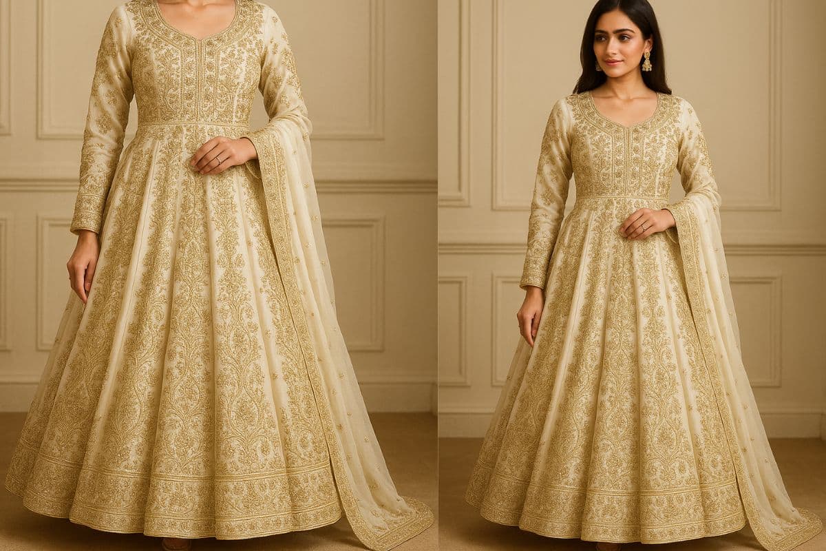 इस डिजाइन में घेरदार लुक होता है जो रॉयल और ग्रेसफुल लुक देता है. इसे शादी और त्योहार में पहनने के लिए बेस्ट ऑप्शन है.