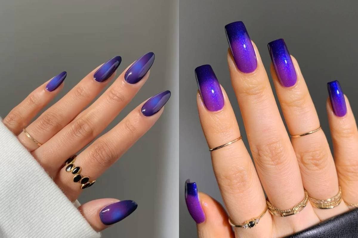 2. ब्लू पर्पल ऑरा नेल्स (Blue + Purple Aura Nails)