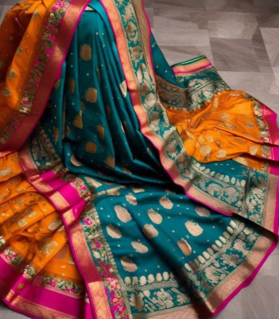 ये हैन्ड मेड बनारसी साड़ी इस हरियाली तीज आप पर खूब जचेगी. हाथ से बनी ये साड़ी भारी होती है और साथ ही आपको रॉयल लुक भी देती है.