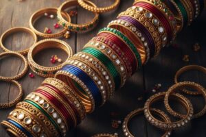 गोल्डन रंग की चूड़ियां तो हर अवसर पर ही अच्छी लगती है. मकर संक्रांति उत्सव पर आप गोल्डन रंग की चूड़ियों के साथ मैचिंग कंगन भी ट्राई कर सकती हैं. यह कॉम्बिनेशन आपके हाथों को बहुत ही सुंदर लुक देगा.