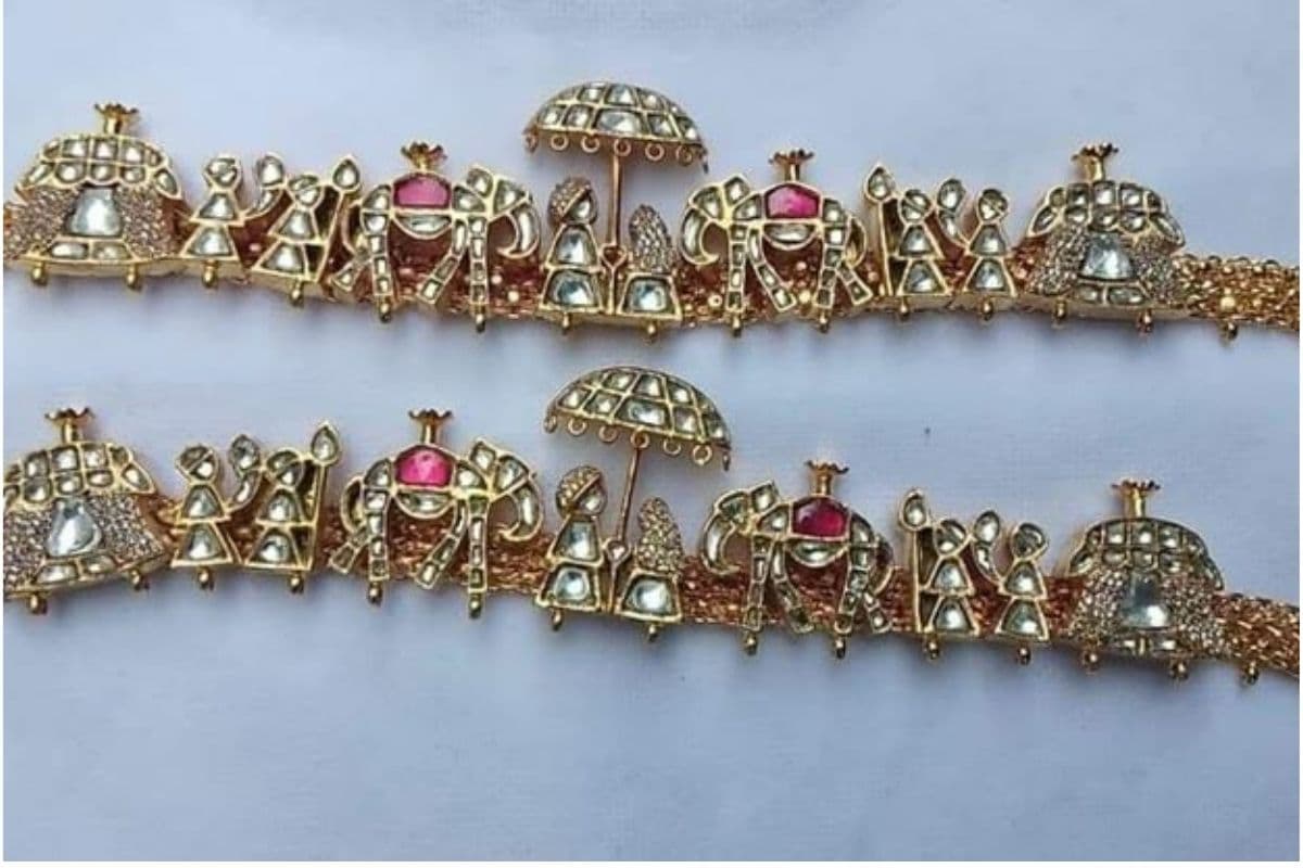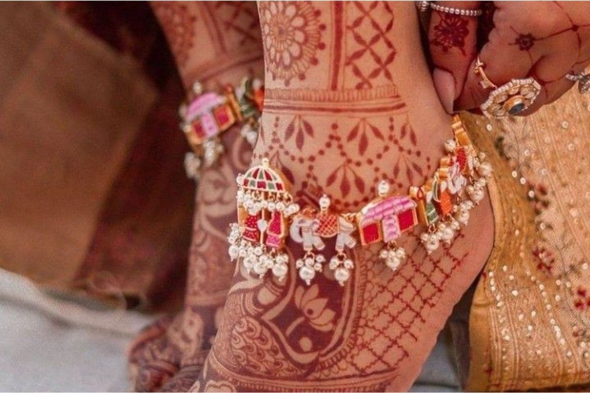 हैवी बारात-पालकी डिजाइन (Full Bridal Look): हैवी बारात-पालकी डिजाइन को काफी पसंद किया जा रहा है. इसमें पायल की पट्टी पर पूरी बारात का सीन उकेरा गया होता है जैसे हाथी, घोड़े और बीच में दुल्हन की पालकी.