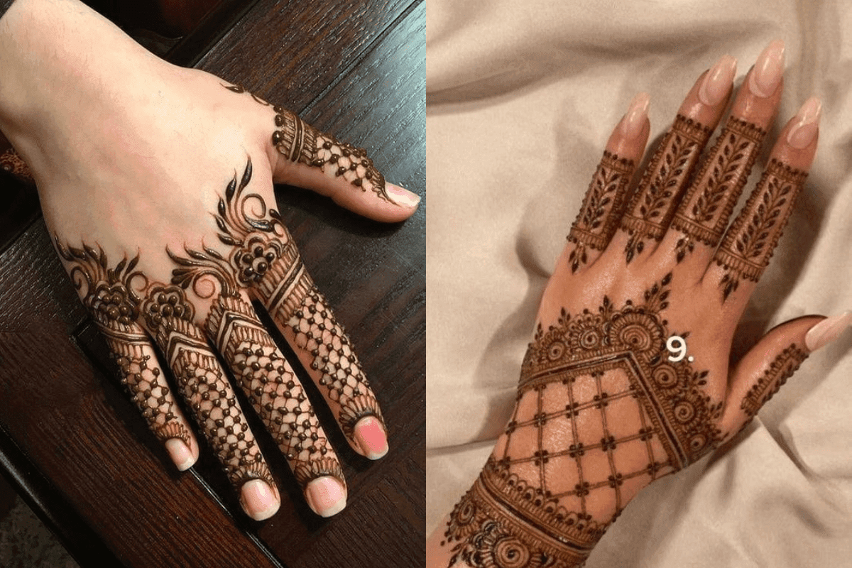 नेट पैटर्न फिंगर मेहंदी हाथों को हल्का, मिनिमल और बहुत स्टाइलिश लुक देती है. इसमें छोटे-छोटे ग्रिड और जाली जैसे पैटर्न बनते हैं, जो हाथों को खूबसूरत और अलग लुक देते हैं. यह डिजाइन उन लोगों के लिए परफेक्ट है जो सटीक और मॉडर्न मेहंदी लुक पसंद करते हैं.