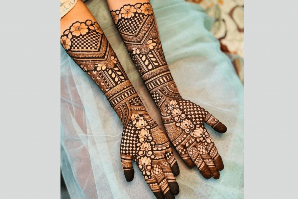 फूलों वाली मेहंदी डिजाइन हमेशा से दुल्हनों की पहली पसंद रही है. इस डिजाइन में बड़े और छोटे फूलों के साथ पत्तियों और बेलों का खूबसूरत कॉम्बिनेशन बनाया जाता है, जिससे हाथों का लुक बेहद आकर्षक लगता है.