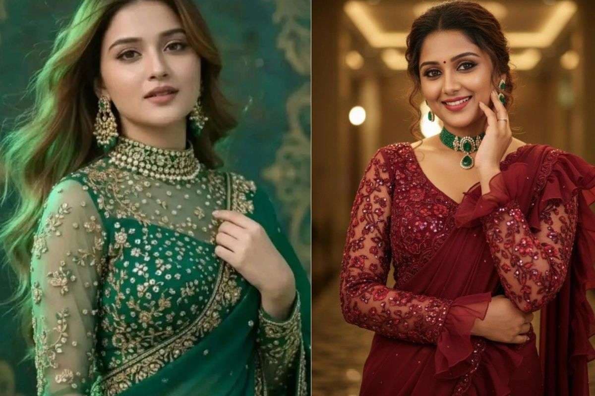 पफ और बिशप स्लीव्स (Puff & Bishop Sleeves): विंटेज स्टाइल को पसंद करने वालों के लिए यह परफेक्ट है. इसमें कंधे के पास थोड़ा पफ होता है और कलाई के पास आकर बाजू टाइट हो जाती है. यह डिजाइन शिफॉन और जॉर्जेट साड़ियों को एक हाई-फैशन मॉडर्न लुक देता है.