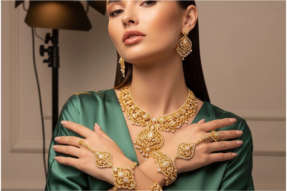 स्टोन वाली हसली : इसमें गोल्ड के साथ सफेद या रंगीन स्टोन लगे होते हैं जो इसे और भी चमकदार और रॉयल बनाते हैं. यह डिजाइन दुल्हन या खास मौके पर पहनने वाली महिलाओं के लिए बहुत पसंद की जाती है.