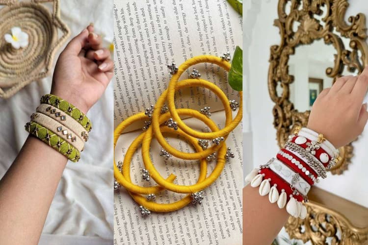 सिल्क थ्रेड से बने बैंगल्स साउथ इंडियन और ब्राइडल लुक के लिए बेहद पसंद किए जाते हैं. मैचिंग साड़ी या लहंगे के साथ ये बैंगल्स पूरे आउटफिट को एलिगेंट लुक देते हैं.