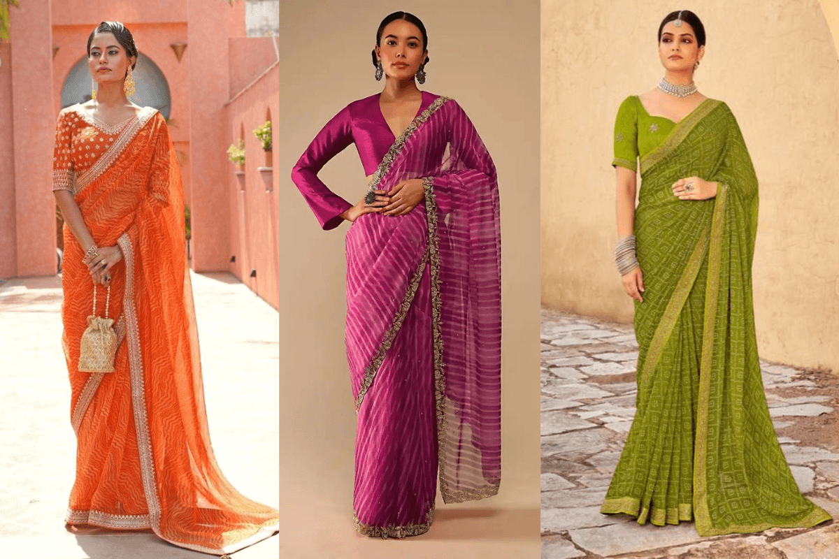 1. जॉर्जेट लेहरिया साड़ी (Georgette Leheriya Saree)