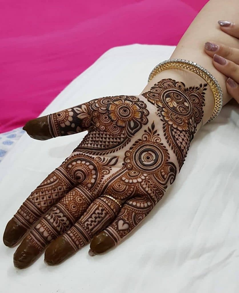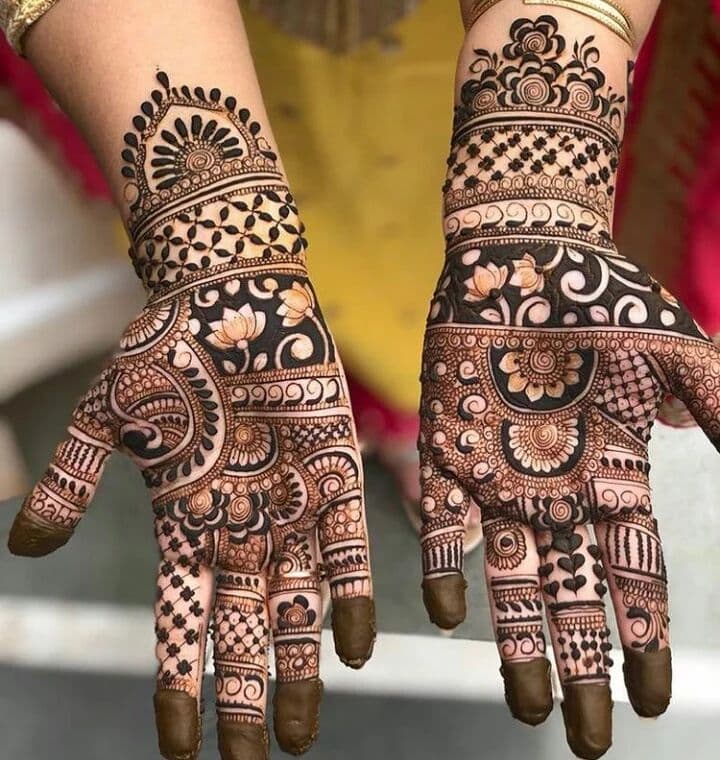 फूल डिजाइन वाली मेहंदी हमेशा से ट्रेंड में रहती है, ऐसा इसलिए भी है क्योंकि ये डिजाइन त्योहार का फील भी देती है. इसकी लोकप्रियता बहुत अधिक है और यह हर आउट्फिट के साथ बहुत सुंदर भी लगता है.