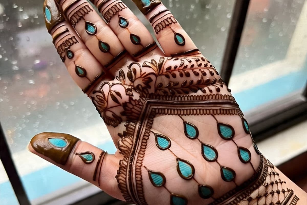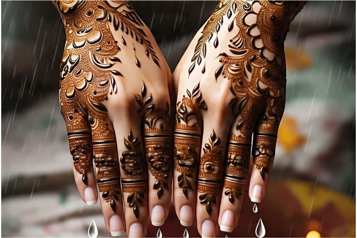 बूंदों से प्रेरित डिजाइन : मानसून है तो बारिश की बूंदों का जिक्र तो होना ही चाहिए. आप ऐसी मेहंदी डिजाइन बनवा सकती हैं जिनमें छोटी-छोटी बूंदों की आकृतियां शामिल हों.