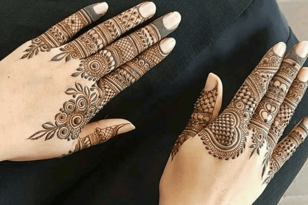 फिंगर टिप मेहंदी डिजाइन भी इन दिनों बहुत पसंद की जा रही है. इसमें सिर्फ उंगलियों पर डिजाइन बनाई जाती है और हथेली को खाली रखा जाता है. यह मिनिमल लुक देने के लिए बेस्ट है.