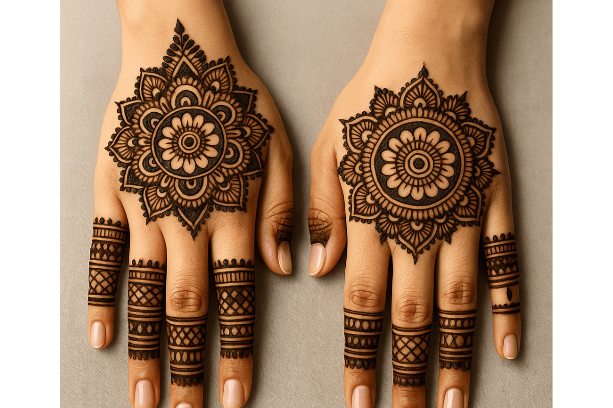 अगर आप क्लासिक और एलीगेंट लुक चाहती हैं, तो मंडला मेहंदी डिजाइन बेस्ट ऑप्शन है. इस गोलाकार पैटर्न में खूबसूरत डिजाइन बना होता है, जो हाथों को रॉयल लुक देता है.