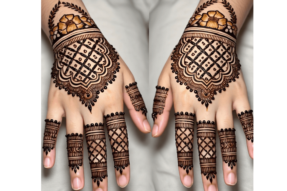 अगर आप यूनिक और खूबसूरत मेहंदी डिजाइन चाहती हैं, तो आप ऐसे अरेबिक नेट पैटर्न मेहंदी डिजाइन लगा सकती हैं. यह डिजाइन खास अवसरों पर आपके हाथों को आकर्षक और ट्रेंडी लुक देगा.