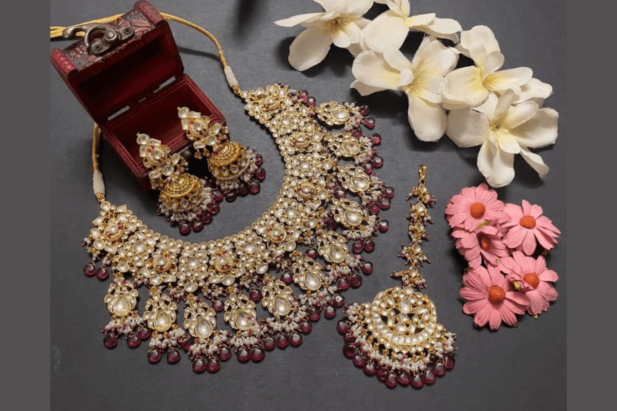 कुंदन से बना यह नेकलेस डिजाइन सबसे अधिक पारंपरिक और आकर्षक होता है. गोल्ड बेस पर रियल कुंदन की सेटिंग इसे बेहद शाही लुक देती है. ये हार बहू की शादी के बाद के किसी भी फंक्शन में पहनने के लिए एकदम सही है. इसके साथ छोटे से झुमके या मांगटीका देने से गिफ्ट और भी रिच लगेगा.