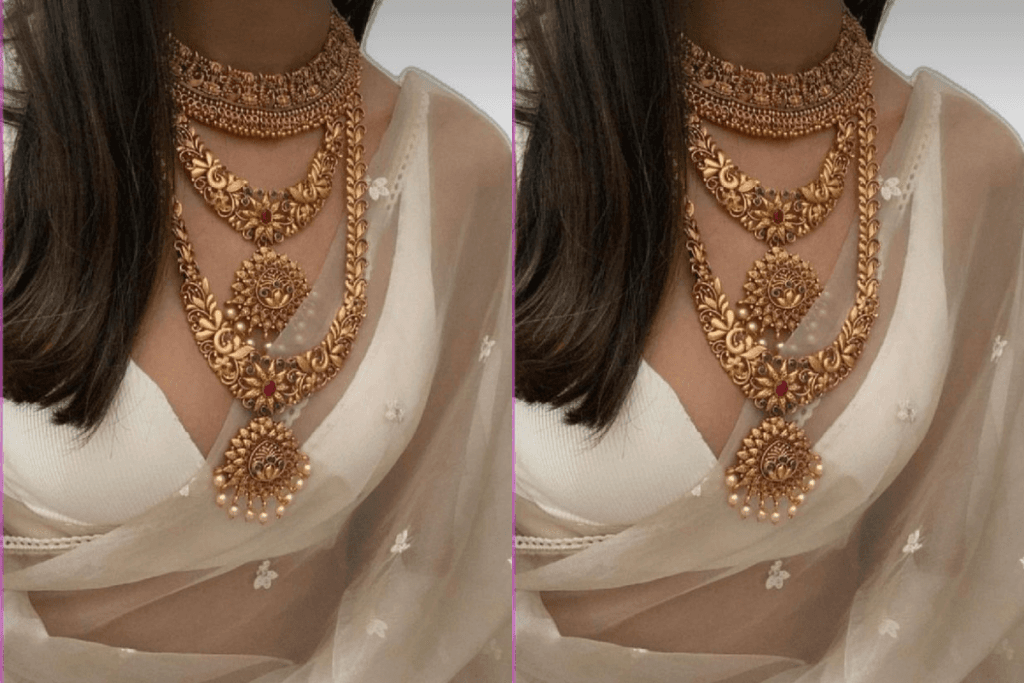 3. गोल्ड रानी हार विद एमरल्ड