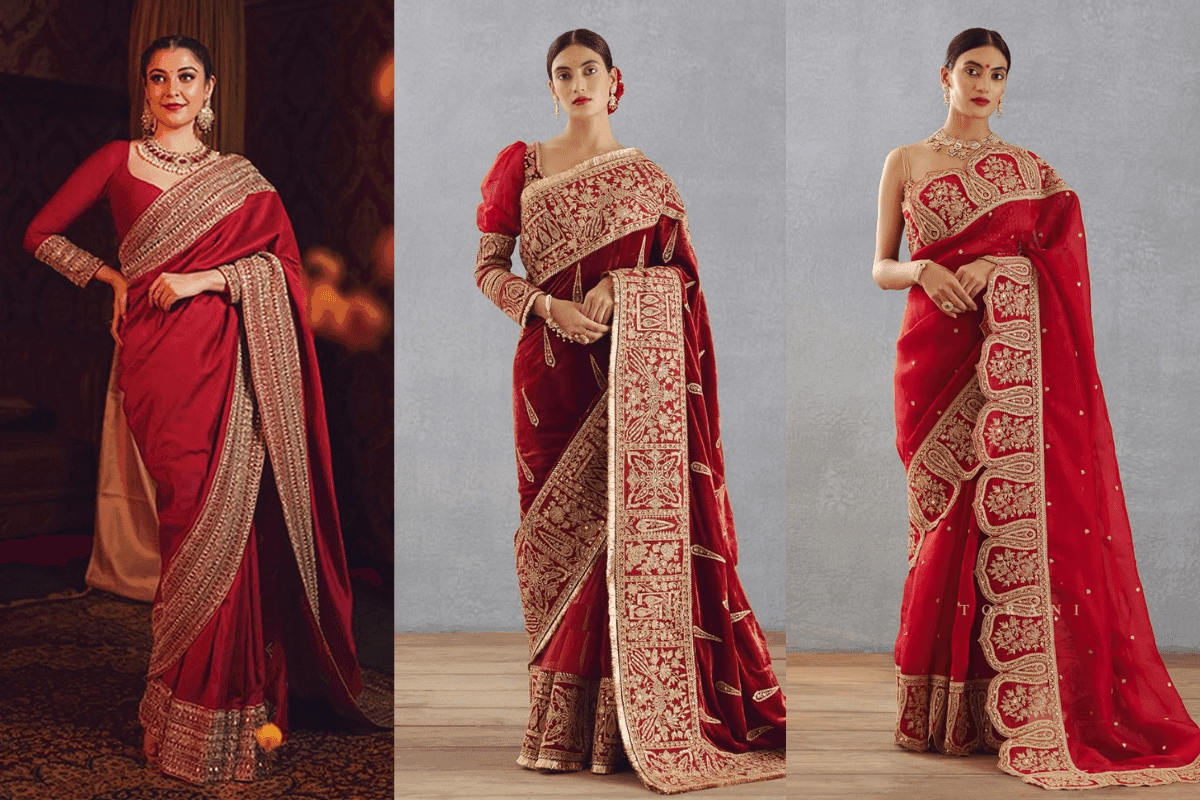 करवाचौथ 2025 के लिए जानें पांच लेटेस्ट रेड डिजाइनर साड़ियां- पार्टी और पूजा दोनों अवसरों के लिए स्टाइलिश रेड साड़ी के विकल्प.