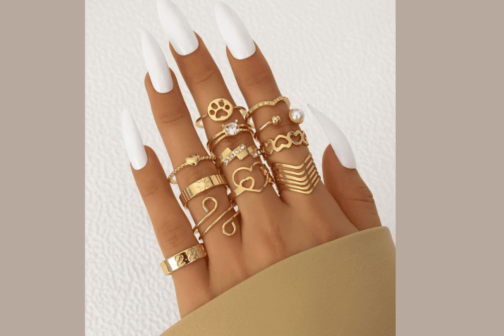 गोल्ड रिंग्स क्लासिक और सदाबहार होती हैं. इनमें प्लेन बैंड से लेकर डायमंड सेटिंग वाली रिंग्स तक कई विकल्प मौजूद हैं. शादी या त्योहारी सीजन के लिए गोल्ड रिंग्स एकदम परफेक्ट हैं.