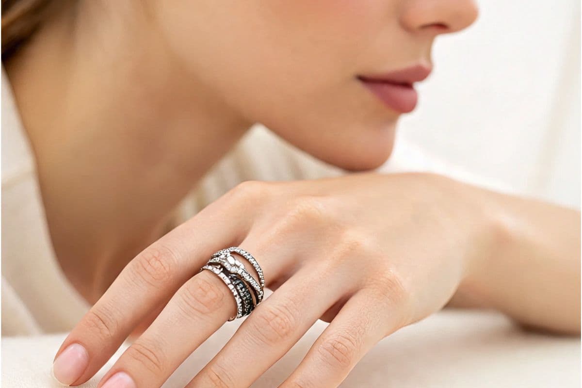 स्टोन-स्टडेड डबल लेयर रिंग्स: इन डिजाइन में दोनों लेयर्स पर छोटे-छोटे हीरे या अन्य रत्न जड़े होते हैं. ये रिंग्स लाइट में चमकती हैं और किसी भी इवेंट में आपके हाथों पर सबका ध्यान खींच लेती हैं. अगर आप ग्लैमर और चमक पसंद करती हैं, तो यह डिजाइन आपके लिए है.