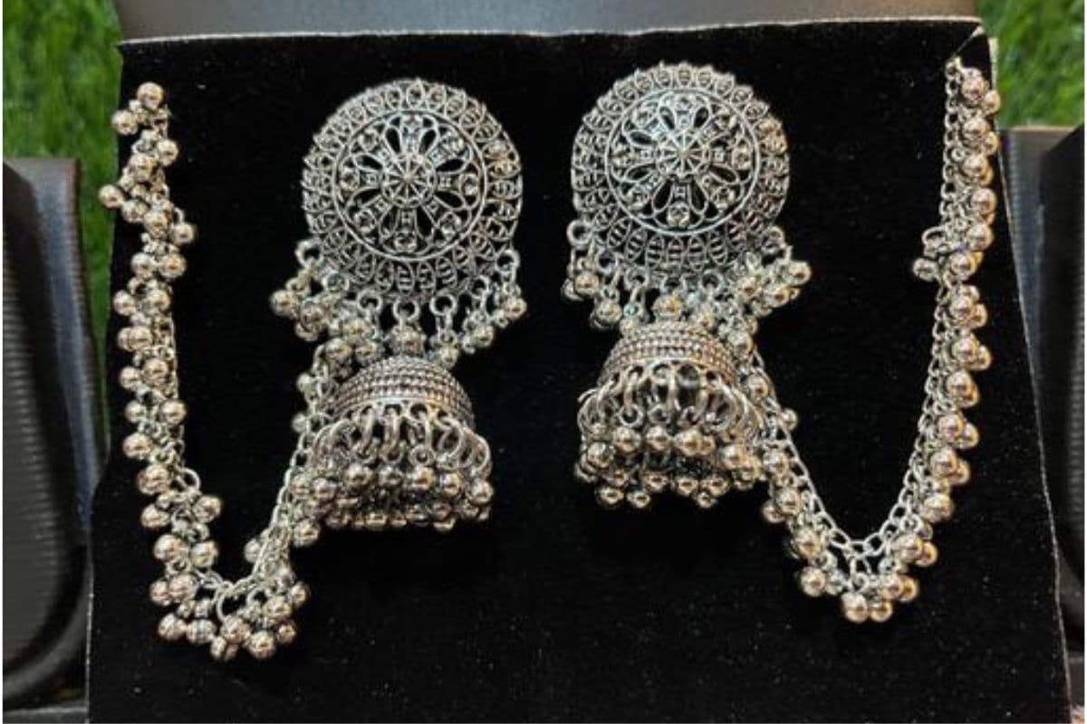 Latest Silver Jhumka with Hair Chain: कानों से होते हुए जुल्फों तक,ये सिल्वर झुमकें बनेगें पिया के दिल की धड़कन