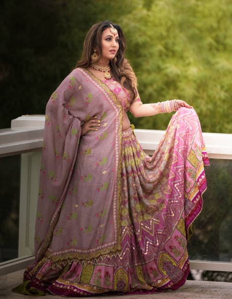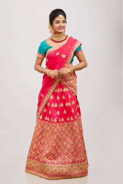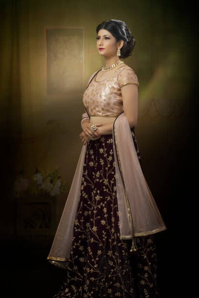 अगर आप इस करवा चौथ पर कुछ अलग पहनना चाहती हैं, तो लहंगा साड़ी आप पर बहुत सुंदर लगेगी. इसे आप सुंदर आभूषणों के साथ पेयर करके पहन सकती हैं. इस प्रकार के परिधानों के साथ आप अपने बालों में फूल भी लगा सकती हैं, ऐसा करने से आपका लुक और सुंदर दिखाई देगा.