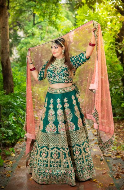 इस करवा चौथ, डार्क कलर का लहंगा पहनना आपके लिए अच्छा ऑप्शन हो सकता है, सुहागिन महिलाएं करवा चौथ के दौरान इस प्रकार के लहंगे पहनना बहुत पसंद करती हैं और इस प्रकार के रंग त्योहार पर पहने जाने पर बहुत अच्छे लगते हैं.