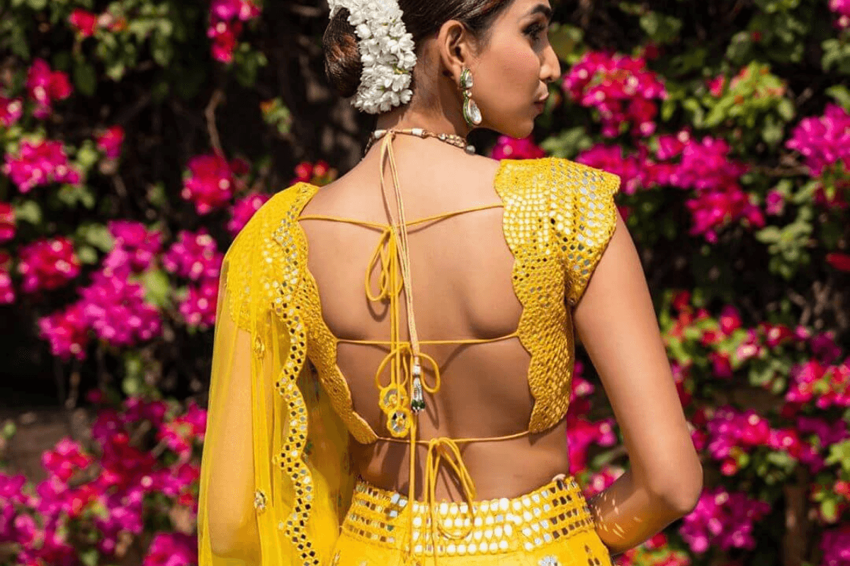 बैकलेस ब्लाउज के लिए ये डिजाइन बहुत ही खूबसूरत है. लहंगे के साथ पहनने के लिए ऐसे ब्लाउज बेस्ट होते हैं और आपको स्टाइलिश लुक देते हैं.