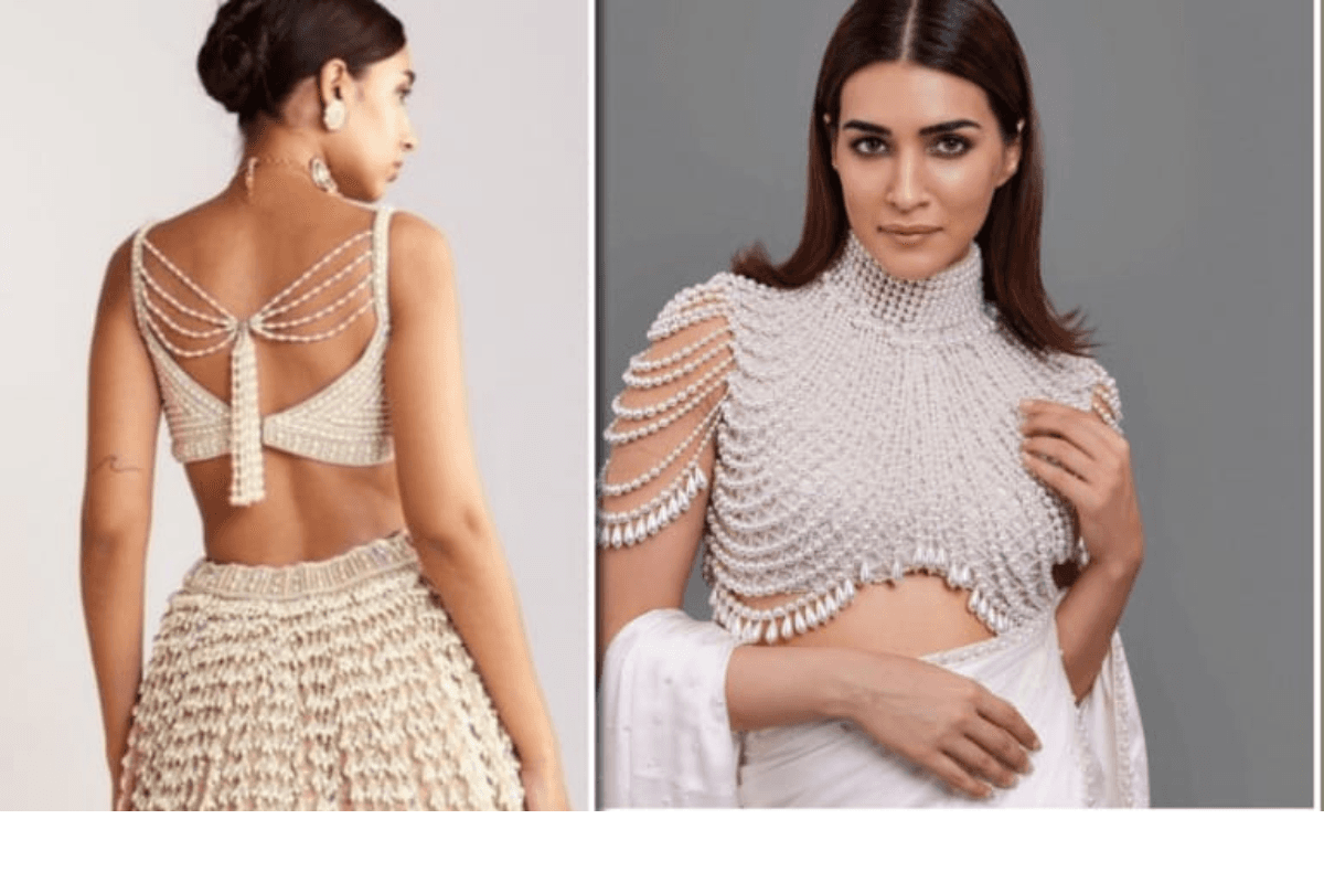 आजकल पर्ल्स से डिजाइन बनाए गए ब्लाउज बहुत ही पॉपुलर हो रहे हैं. लहंगा ब्लाउज बनवाने के लिए यह बहुत ही खूबसूरत ऑप्शन हो सकता है. इसमें आपके बैक या बाजू पर पर्ल्स लगे होते हैं जो आपको कूल और यूनिक लुक देते हैं.