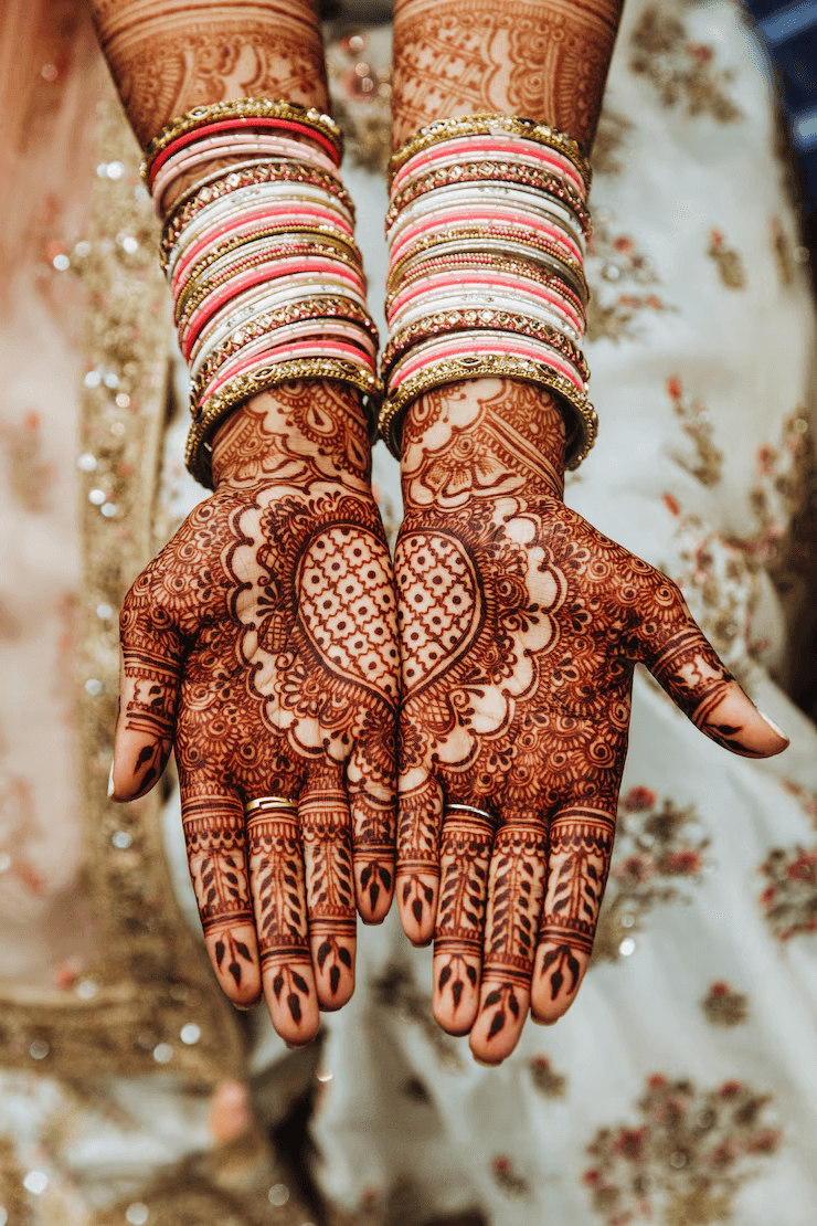 ब्राइडल मेहंदी में गुलाब और कमल जैसे फूल बहुत अच्छे लगते हैं और इनका धार्मिक महत्व भी होता है. इस तरह की मेहंदी आप कलाई के पीछे से शुरू करें और छोटे-छोटे मेहराब बनाएं. फिर फूलों की बेल, बिंदियां और जाल जैसी डिजाइनों को मिलाकर आगे बढ़ाएं. हथेली तक पहुंचते-पहुंचते चांद के आकार बनाकर उन्हें डिजाइन से भरें और फिर पैच डिजाइन जोडें. उंगलियों में भी अलग-अलग डिजाइन मिलाकर लगा सकती हैं.