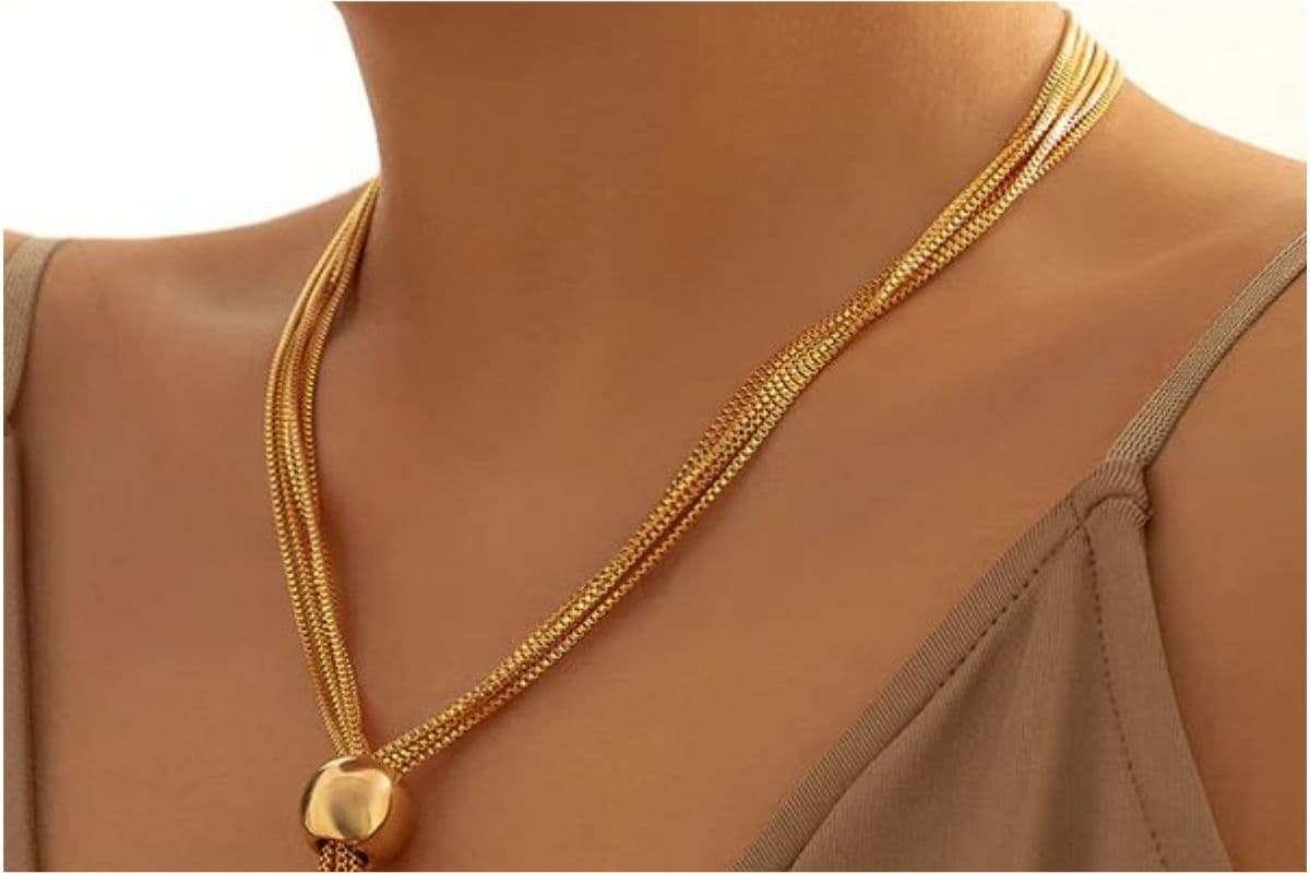 लेयर्ड चेन नेकलेस (Multi-Layered Chain) : इसमें 2 से 3 पतली चेन एक-दूसरे से जुड़ी होती हैं और बीच में एक छोटा सा पेंडेंट होता है.ऑफिस वियर और किटी पार्टीज के लिए परफेक्ट होता है.