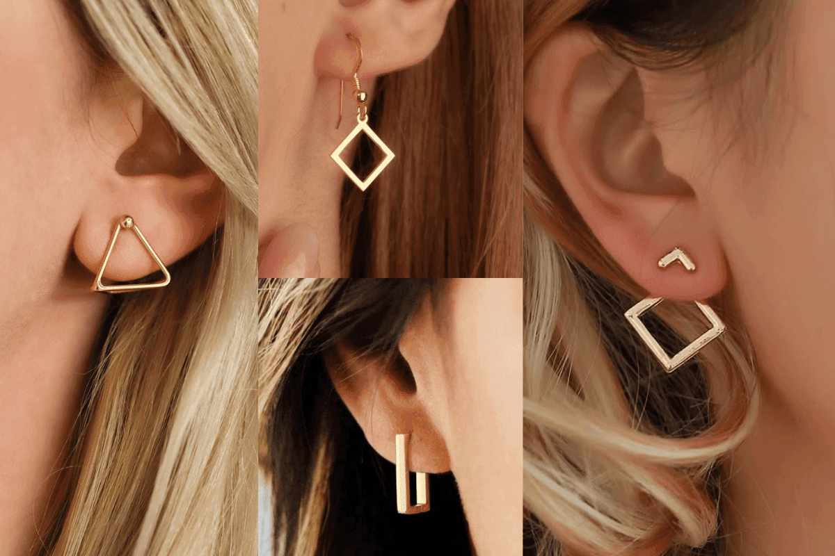 Geometric Gold Earrings | जियोमेट्रिक गोल्ड ईयररिंग्स