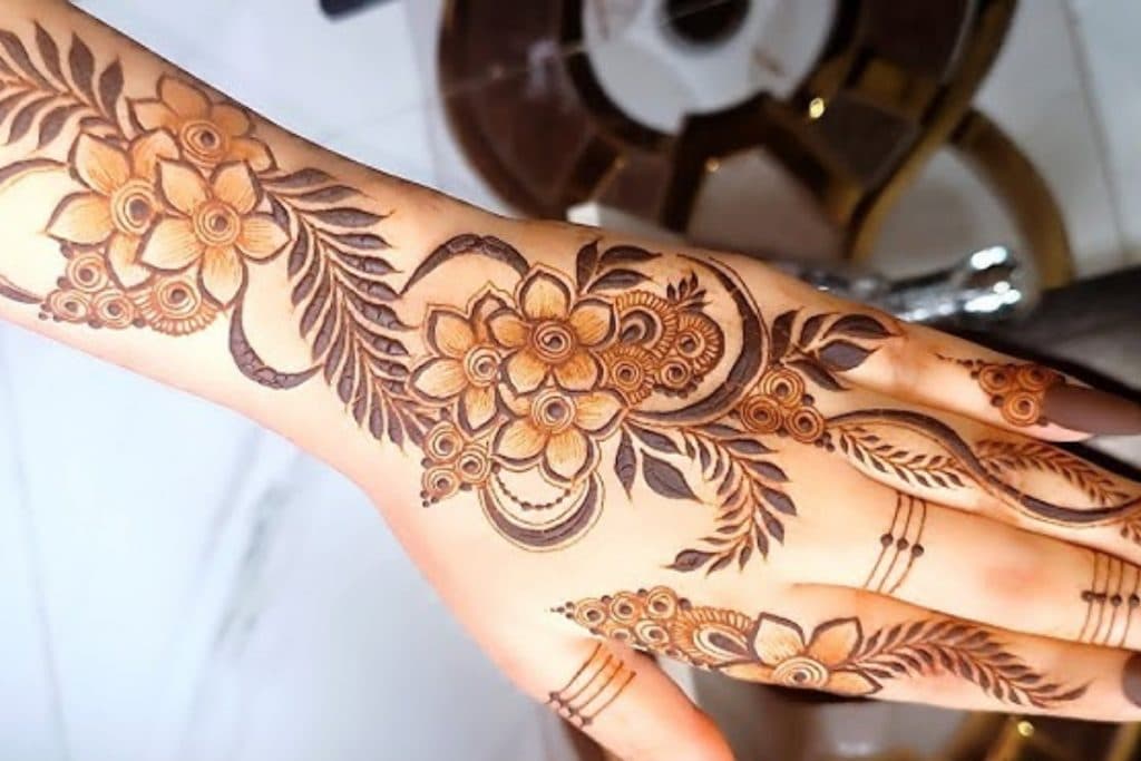 फ्लोरल यानी फूलों वाली मेहंदी डिजाइन यूं तो सबसे पुरानी है लेकिन यह हमेशा ही ट्रेंड में रहती है. अगर आपको सिंपल और आसान सी मेहंदी डिजाइन लगवानी है तो ये आपके लिए सबसे बेस्ट है.