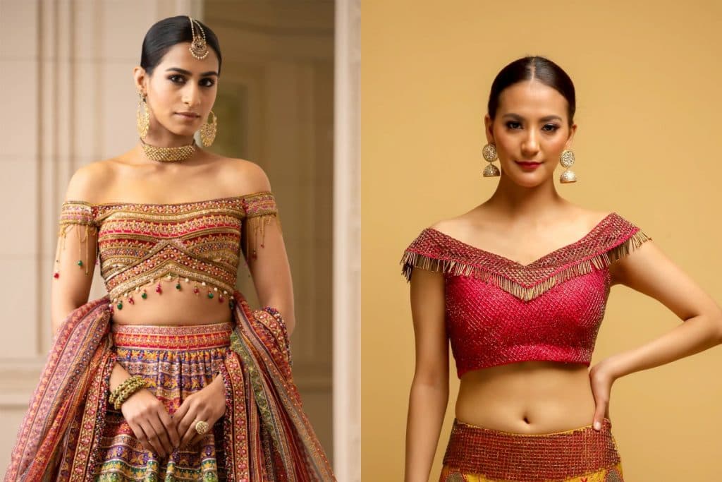 ऑफ शोल्डर ब्लाउज आपके कॉलर बोन और कंधे को सुंदर दिखाने में मदद करता है. इस तरह के डिजाइन ट्रेंड में होने के कारण आप इसे किसी भी पार्टी और ईवेंट्स में पहन सकती है.
