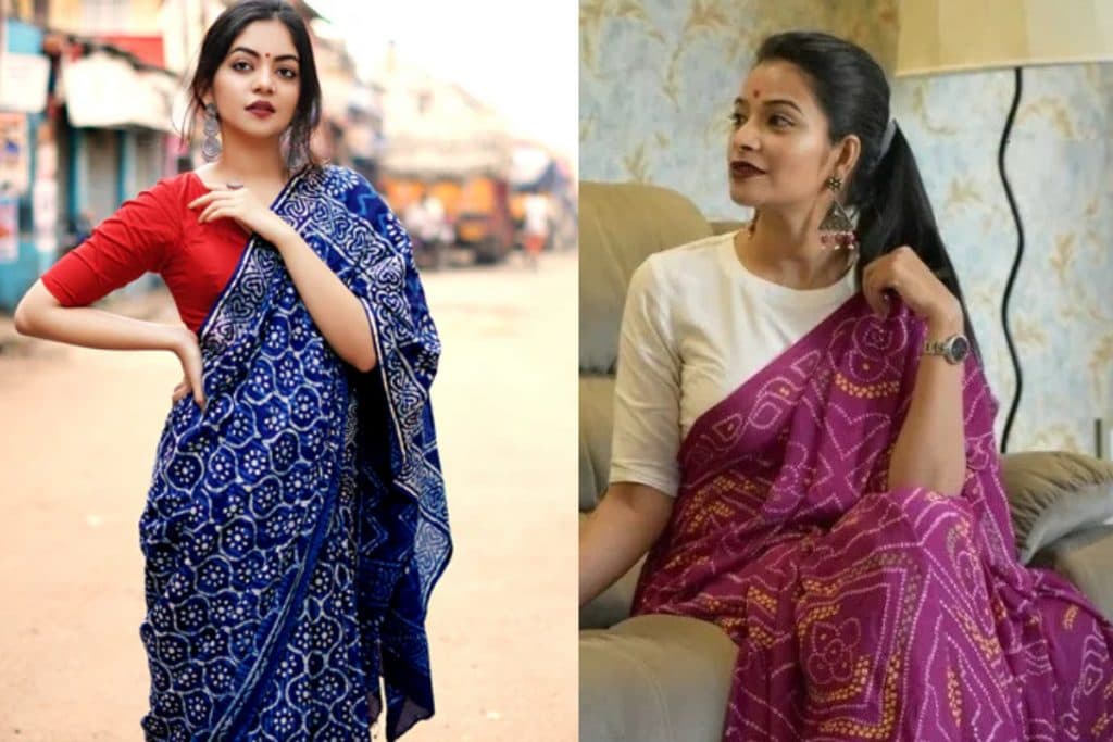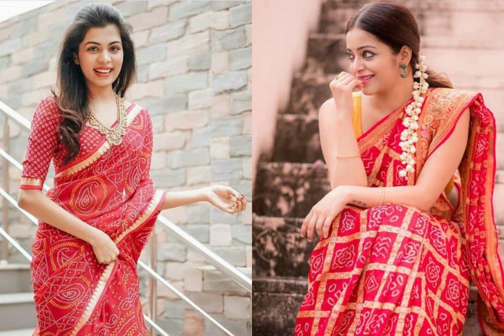 बांधनी प्रिंट की साड़ियां पूजा पाठ में काफी पसंद की जाती है, ऐसे में आप लाल या पीले रंग की खूबसूरत बांधनी साड़ी पहन सकती हैं .