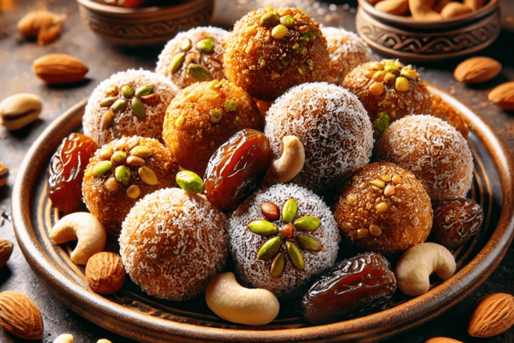ड्राई फ्रूट लड्डू में भरपूर मात्रा में प्रोटीन, फाइबर और विटामिन होते हैं. यह न केवल आपकी एनर्जी बढ़ाता है, बल्कि सर्दियों में शरीर को गर्म भी रखता है. खजूर और किशमिश प्राकृतिक मिठास के साथ शरीर को आयरन और पोटैशियम भी प्रदान करते हैं.