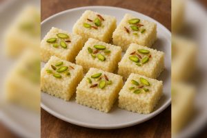 - मिश्रण को चिकने बर्तन या थाली में डालकर फैलाएं. फिर इसके ऊपर काजू या पिस्ता सजाएं. हल्का ठंडा होने के बाद मनचाहे आकार में काट लें.