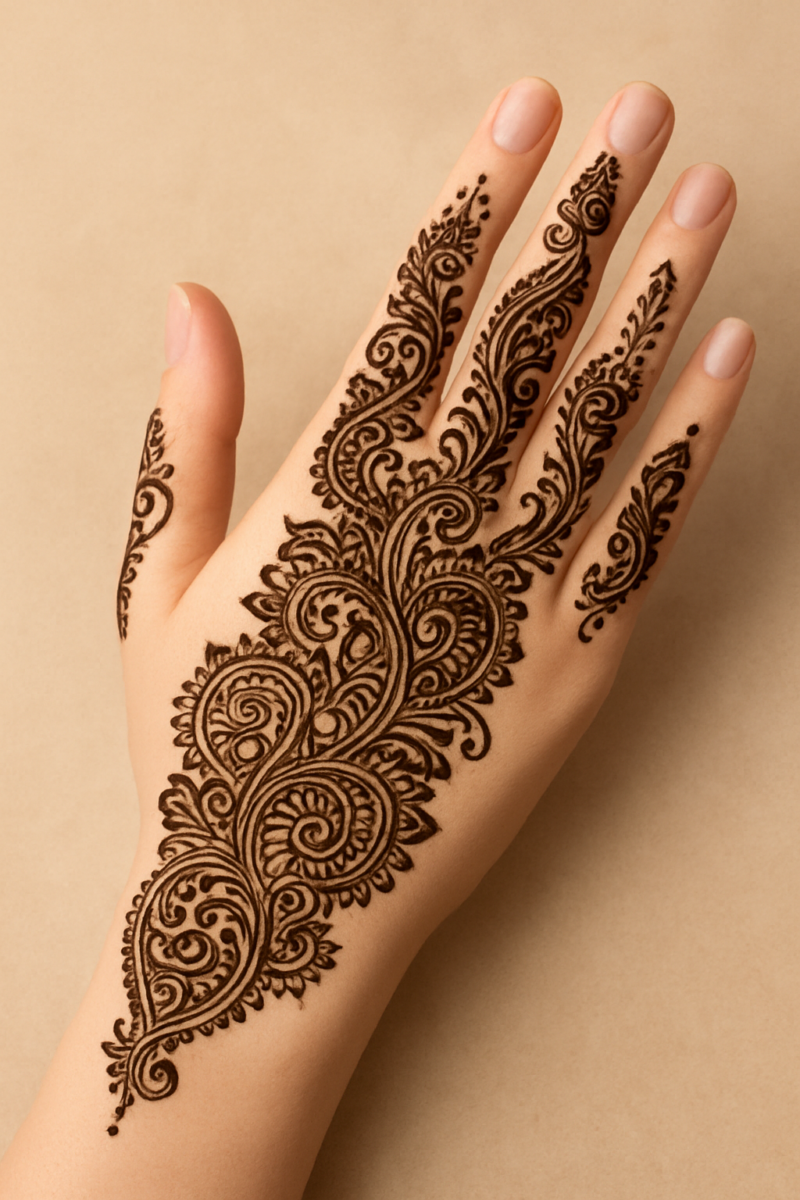 इंडो–वेस्टर्न फ्यूजन मेहंदी डिजाइन