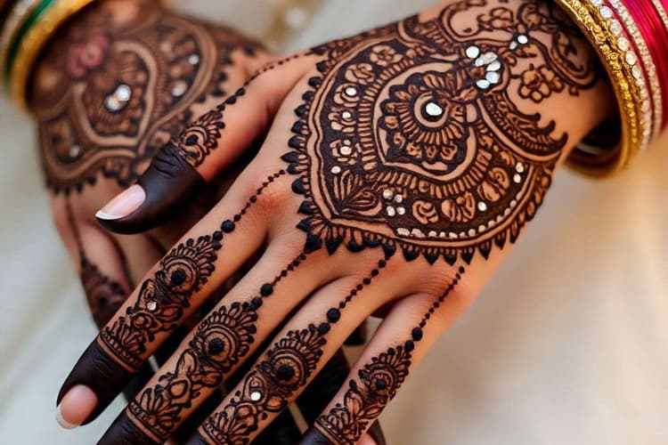मिनिमल मोडर्न फिंगर मेहंदी डिजाइन उन दुल्हनों के लिए जिन्होंने भारी मेहंदी से दूरी बनाई है, सिर्फ फिंगर फोकस्ड मेहंदी ट्रेंड में छाई हुई है. उंगलियों पर फाइन लाइन आर्ट और ज्योमेट्रिक पैटर्न देकर बीच का हिस्सा खाली छोड़ा जाता है. सगाई और मेहंदी नाइट में यह डिजाइन सबसे ज्यादा पसंद किया जा रहा है.
