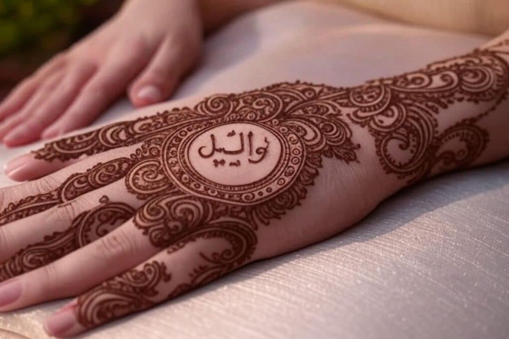 पति का नाम लिखा मेहंदी डिज़ाइन एक बहुत ही प्यारा और रोमांटिक विचार है. मेहंदी डिजाइन में दुल्हन के हाथों में पति का नाम या शादी के विशिष्ट शब्दों को उकेरा जाता है, जो एक खास यादगार के रूप में रहता है.