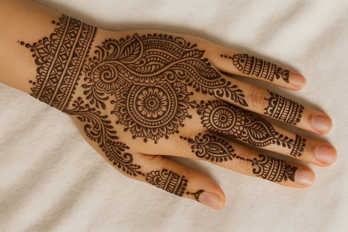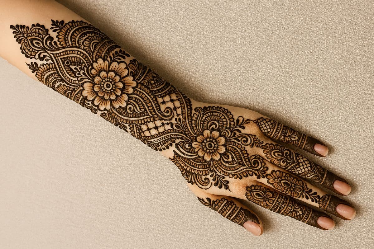 अगर आप हाथों में डिटेल पैटर्न और भरा-भरा डिजाइन चाह रही हैं तो फुल हैंड मेहंदी डिजाइन आपके लिए परफेक्ट है. ये आपको खूबसूरत लुक देता है.