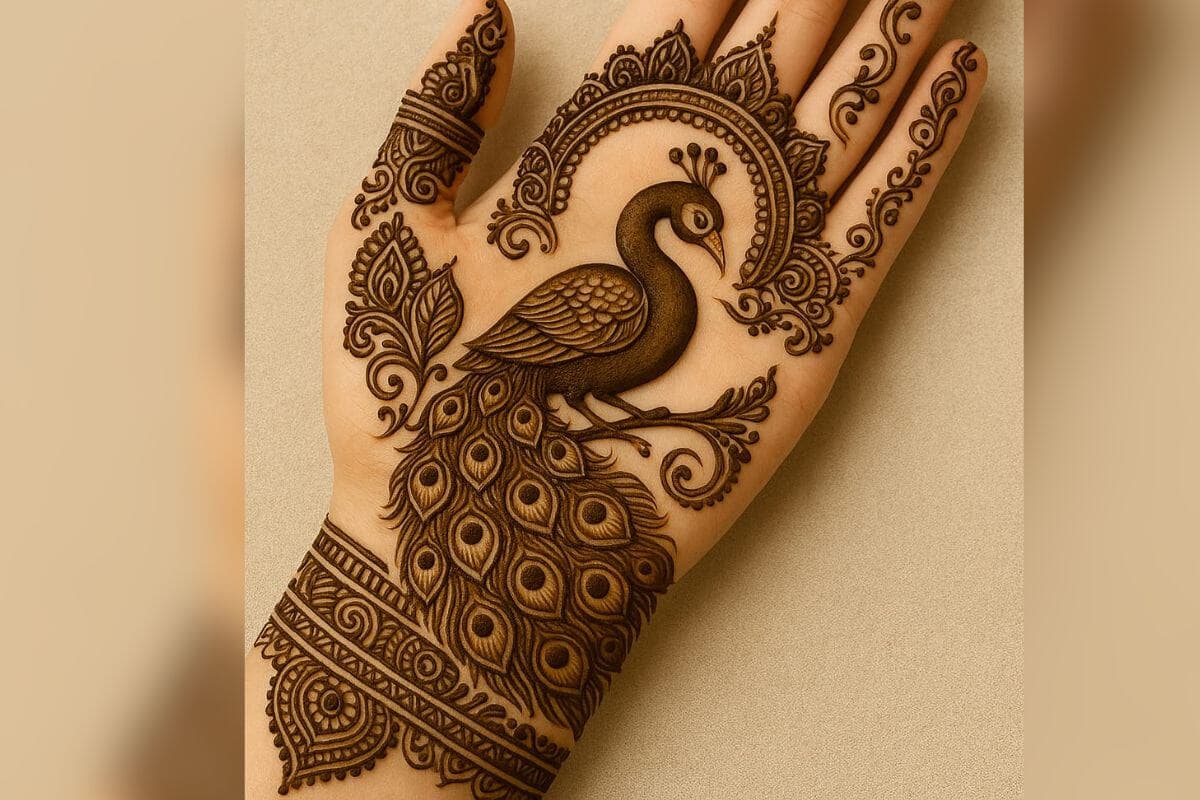 मेहंदी डिजाइन में आप मोर डिजाइन की मेहंदी को लगा सकते हैं. ये बेहद ही आकर्षक देखने में लगती है. आप इसमें अलग-अलग पैटर्न जैसे फूल या जाली के साथ एक बेहतरीन डिजाइन बना सकते हैं.