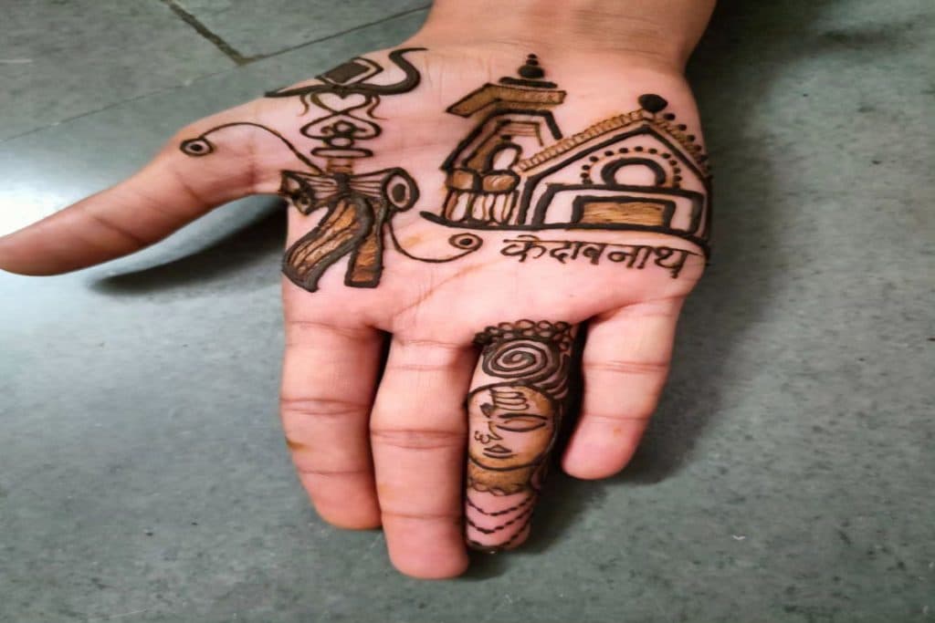 ये डिजाइन बहुत ही आसान हैं और इसे महिलाओं के साथ-साथ पुरुष भी चाहे तो श्रद्धा से लगवा सकता हैं. इसमें आप केदारनाथ मंदिर का सिम्पल डिजाइन बनवा सकते हैं.
