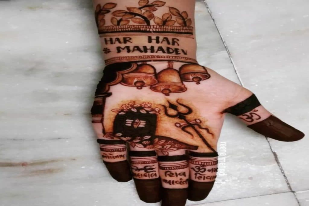 अगर आप चाहती हैं कि मेहंदी लगवाने में आपका समय कम लगे तो आप शिवलिंग और त्रिशूल को डिजाइन में बनवा सकती हैं साथ ही इसमें आप महादेव से जुड़े मंत्र या नाम भी लिखवा सकती हैं.