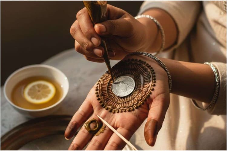 - चूड़ी और सिक्के का मैजिक : अगर आपको मेहंदी का ‘M’ भी नहीं आता तो यह हैक आपके लिए है. हथेली के बीच में एक सिक्का रखें और उसके चारों तरफ चूड़ी रख दें. अब चूड़ी के किनारों पर छोटे-छोटे डॉट्स लगाएं और सिक्के के चारों ओर पंखुड़ियां बना दें. देखते ही देखते एक परफेक्ट मंडला मेहंदी डिजाइन तैयार हो जाएगा.