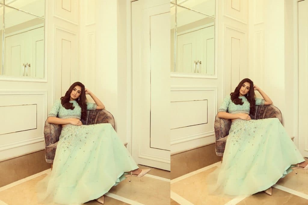 आइस-ब्लू लहंगे में दिखीं बेहद खूबसूरत