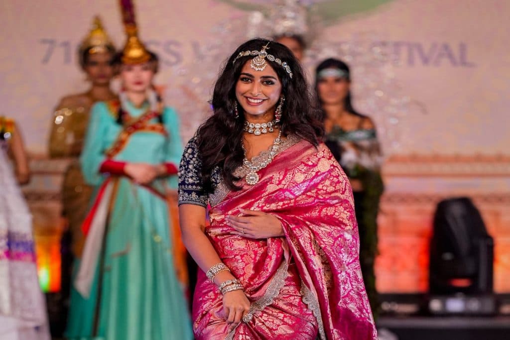 इस साल सिनी शेट्टी मिस वर्ल्ड में भारत का प्रतिनिधित्व कर रही हैं. सिनी ने गुलाबी बनारसी सिल्क साड़ी में रैंप वाॅक किया. डायमंड ज्वेलरी कैरी कर सिनी ने अपने लुक को और भी एलिगेंट लुक दिया था. सिनी ने कहा कि मिस वर्ल्ड में भारत का प्रतिनिधित्व कर उन्हें बहुत गर्व महसूस हो रहा है.