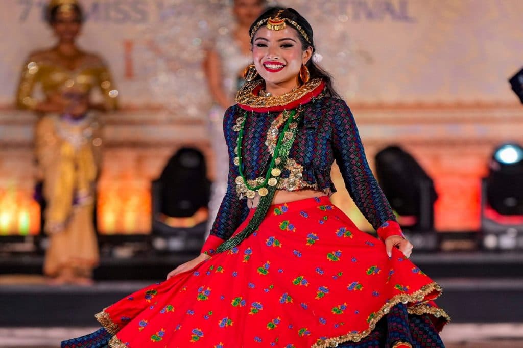 नेपाल की कंटेस्टेंट प्रियंका रानी जोशी ने मिस वर्ल्ड पेजेंट में लहंगा पहनकर रैंप वाॅक किया.