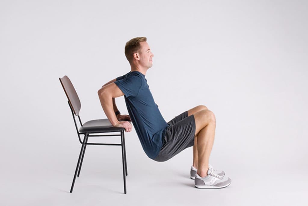यह एक फैट बर्निंग एक्ससरसाइज है जो न केवल बाहों बल्कि पीठ मसल्स को भी टोन करता है. इस एक्ससरसाइज को करने के लिए ऐसा बिस्तर या कुर्सी चुनें जो ज़मीन से थोड़ा ऊंचा हो. कोई भी कुर्सी या बिस्तर जो जमीन पर स्टेबल है वह एक अच्छा ऑप्शन हो सकता है. एक नरम कुशन वाला सोफा इस एक्ससरसाइज को करने के लिए अच्छा ऑप्शन नहीं हो सकता है. इससे इस टोनिंग एक्ससरसाइज को करने में ज्यादा परेशानी हो सकती है.