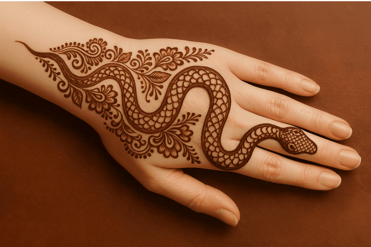 नाग पंचमी के अवसर पर नाग पैटर्न वाली मेहंदी महिलाओं को बहुत पसंद आती है. आप भी इस खास दिन अपने हाथों पर ऐसे डिजाइन लगा सकती हैं. इससे आपके हाथ और भी खूबसूरत नजर आएंगे.