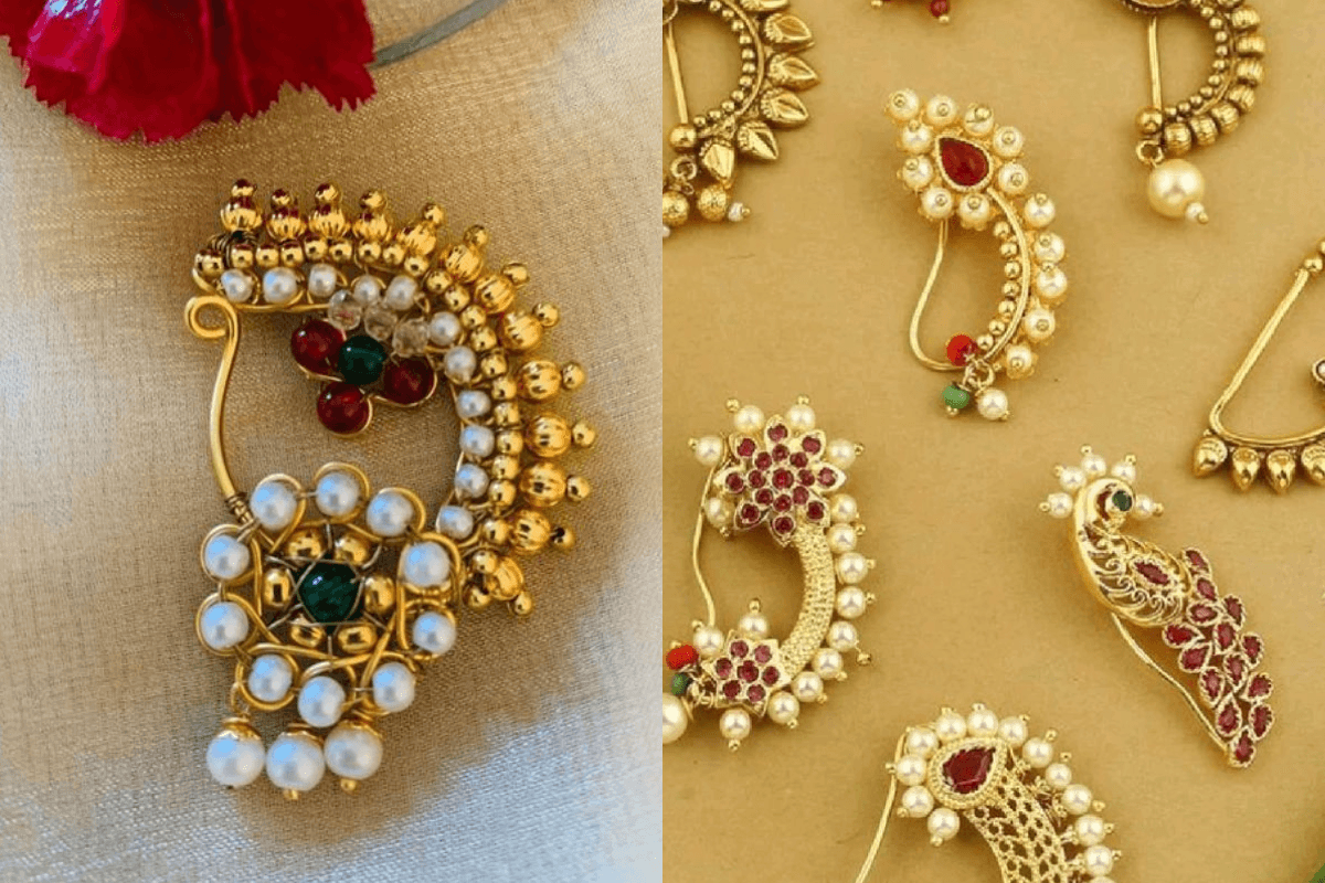 - महाराष्ट्रीयन नथ: नथ मराठी लुक की पहचान है, इसे जरूर पहनें.