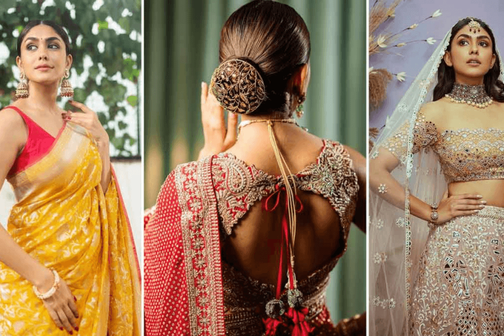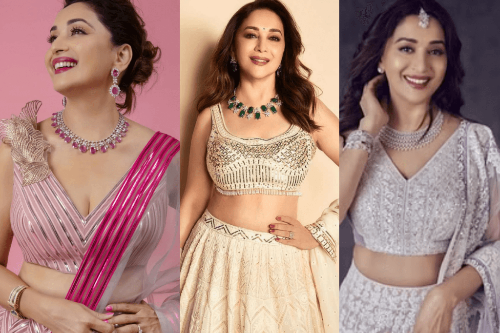 धक-धक गर्ल माधुरी दीक्षित का राउंड नेक ब्लाउज डिज़ाइन इस बार गरबा नाइट में भीड़ में आपको अलग बनाएगा. बहुत कम लड़कियां इस तरह के ब्लाउज पहनती हैं, इसलिए यह आपको एक खास लुक देगा. इस तरह का ब्लाउज किसी भी लहंगे के साथ जंचेगा, और आपको एक खूबसूरत और क्लासिक लुक प्रदान करेगा.